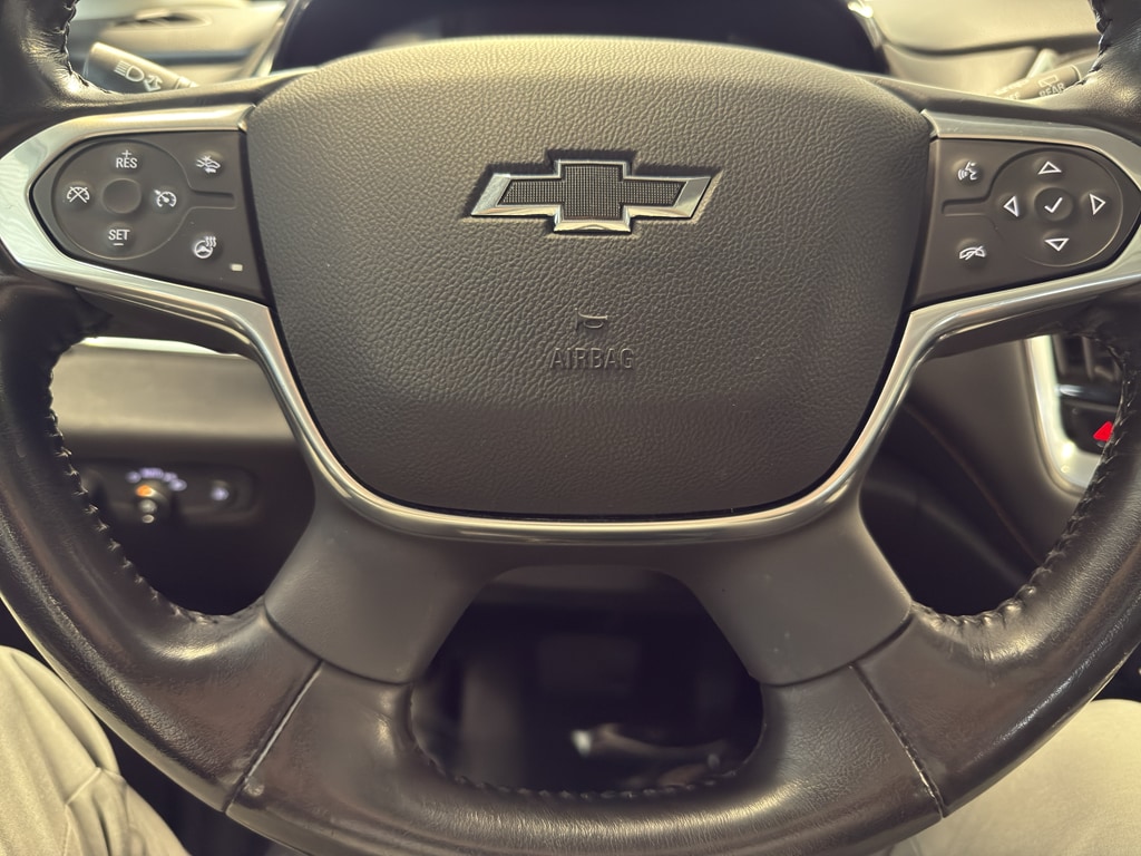 Clean, confident and ready for your next adventure â" this 2021 Chevrolet Traverse RS combines athletic styling with family-friendly functionality. Power comes from a smooth 3.6L V6 paired with AWD for composed highway cruising and added grip in changing conditions. The RS trim adds bold exterior accents and 20-inch wheels that help it look as good as it performs. Inside, premium leather seating elevates comfort for five adults plus versatile cargo space. A heated steering wheel keeps hands warm on cold mornings, while cabin tech keeps everyone connected: Apple CarPlay, Hands Free Bluetooth and a BOSE stereo make commutes and road trips more enjoyable. Stream music or take calls with clear audio and simple touch-screen control. Practical details matter â" ample storage, multiple USB ports and thoughtful safety engineering give daily peace of mind. Whether youâre ferrying kids, hauling gear or escaping for a weekend, this Chevrolet Traverse balances power, refinement and utility. Car has been thoroughly inspected, serviced and detailed. Competitive pricing and flexible financing available. Contact us to schedule a test drive and experience the comfortable ride, responsive V6 performance and feature-rich cabin of this 2021 Chevrolet Traverse RS with AWD.